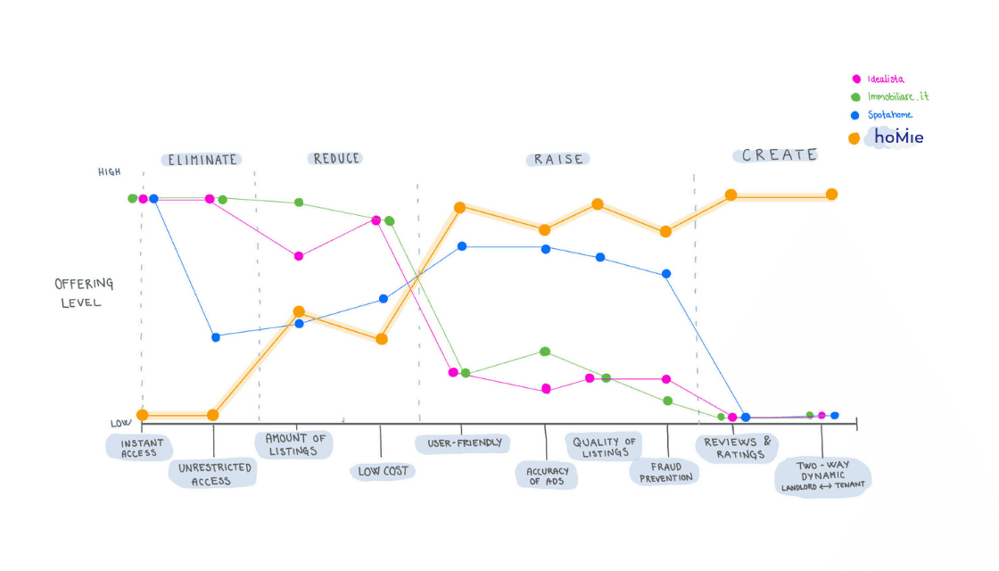 Through competitor analysis, we've shaped our strategic curve, noting a lack of emphasis on emotional factors. We've opted to prioritize emotional appeal over certain functionalities to differentiate our offering in the market.